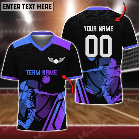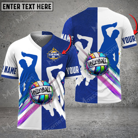 Maxcorners Volleyball Colorful Personalized V-neck T-Shirt - Blue