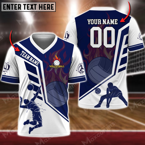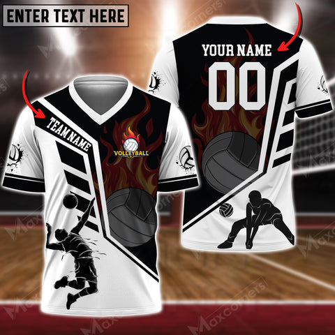 Maxcorners Volleyball Flame Personalized 3D V-neck T-Shirt